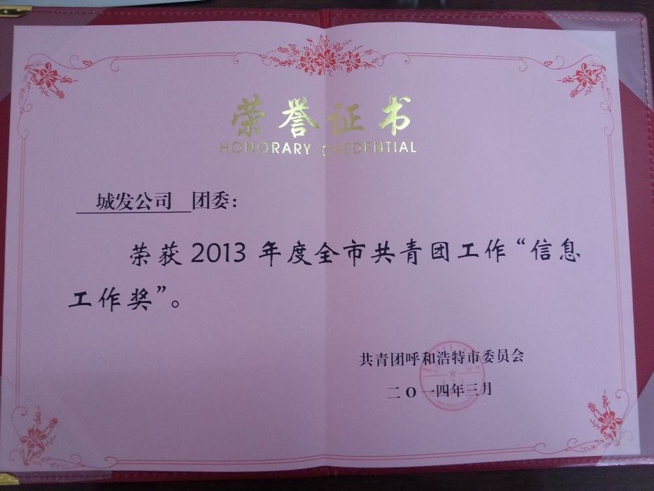 城發公司團委獲得2013年度全市共青團工作“信息工作獎”