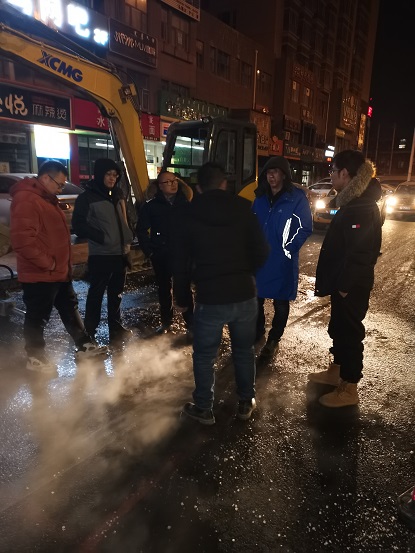 供熱一次管道漏水,暖氣卻十幾個小時未停,工人師傅們頂水搶修一場漏水事故面前,城發供熱公司三合村分公司沒有停暖,而是立即派搶修工人抵達現場,連夜開始尋找漏點,并第一時間頂水搶修,博得廣大用戶的稱贊。