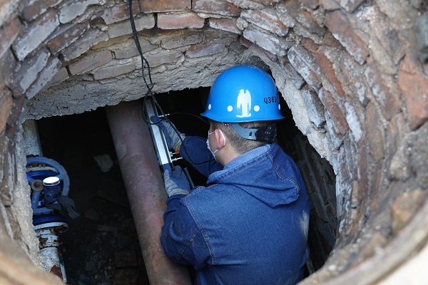 在13號樓進出口閥門附近,檢修人員正在二次管網(wǎng)地溝內(nèi)進行水力平衡調(diào)節(jié)工作。橋靠分公司第四運營所副所長賈超介紹:"在2020-2021采暖期供暖結(jié)束后,所部便開展冬病夏治、供熱設(shè)施維修工作。特別針對老舊小區(qū)供熱系統(tǒng)二次網(wǎng)冷態(tài)平衡調(diào)節(jié)制定了一系列方案與措施;運營所各班組提前對各小區(qū)熱力站除污器、用戶濾網(wǎng)等進行了全面細(xì)致的清洗工作,以確保熱力站、二次網(wǎng)及用戶供熱系統(tǒng)無堵塞、阻力無異常。為新采暖期供熱及確保各小區(qū)水力調(diào)節(jié)工作做好充分的準(zhǔn)備。"