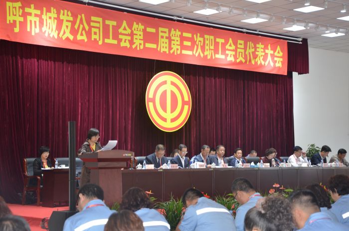 會上,市總工會三產服務業工會主席田喜武致辭,公司總經理呂德育作了《城發公司2016年度行政工作報告》,公司黨委副書記、工會主席張永作《城發公司2016年度工會工作報告》,公司副總經理武云作《城發公司2016年度財務工作報告》,討論、審議并表決通過了《城發公司工會2016年經費審查工作報告》、《城發公司第二屆第三次職工、會員代表大會提案征集工作報告》、《2016年住房公積金和社會保險繳納情況及2017年計劃的報告》等25個決議,簽訂《2017年呼和浩特市城發投資經營有限責任公司工資集體合同》、《2017年呼和浩特市城發供熱有限責任公司工資集體合同》,公司黨委書記、董事長張瑞平作重要講話。