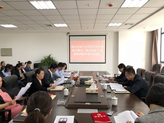 上午,城發房地產公司黨支部組織召開了房地產公司2018年集中整治雁過拔毛式腐敗問題專項行動會議,公司全體干部職工共30人參加會議。
