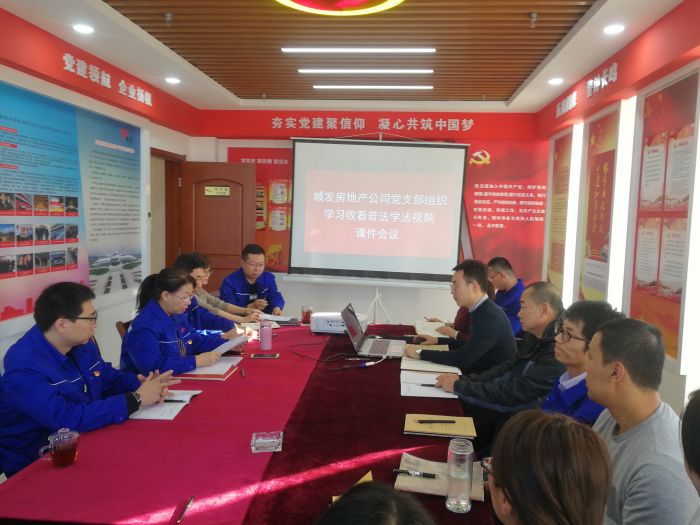 11月22日,房地產(chǎn)公司黨支部組織公司全體黨員、干部職工16人在城發(fā)集團11樓黨員之家學(xué)習(xí)收看普法學(xué)法視頻課件。