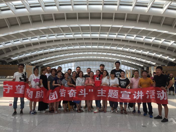 宣講活動由總公司團委書記趙杰主持。各分公司團支部的一名代表進行宣講,再由趙杰書記進行總結。趙杰帶領大家回顧了城發公司的發展歷史,進一步學習領會了“守望相助 團結奮斗”的精神。隨后由各支部組隊,每一個支部為一個團隊,圍繞“團結”進行“烽火傳書”信息傳遞拓展活動。歷經2個多小時的團隊合作,金橋分公司團支部獲得了第一名。