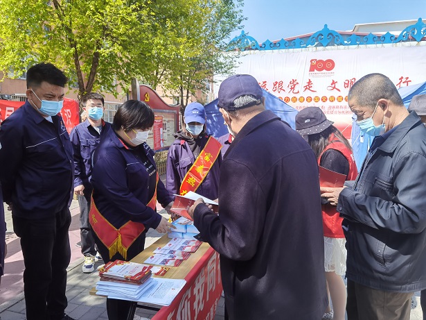 活動現場,廣大黨員向社區居民發放了《內蒙古自治區促進民族團結進步條例》等宣傳資料,并通過懸掛橫幅、設立宣傳臺、發放宣傳資料、主題宣講等多種形式,大力宣傳民族政策、法律法規以及民族團結基本知識,加深了社區居民對民族政策及法律法規的認識,進一步凝聚了民族團結進步正能量,為推進民族團結進步工作創新發展起到了積極作用。